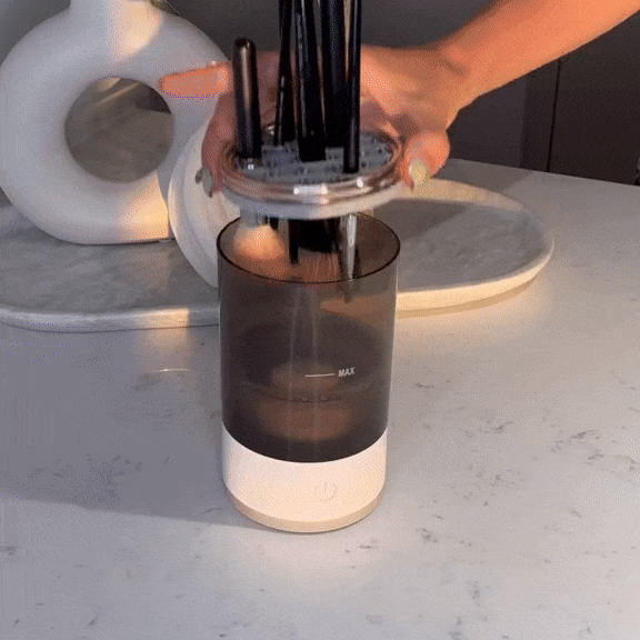 It only takes 10–30 seconds per brush! The rotating spin technology removes makeup residue, oil, and bacteria quickly — so your brushes are clean, dry, and ready to use immediately.